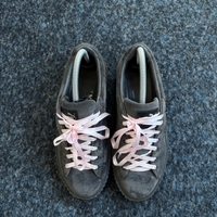 Alkuperäset nauhat hukkuneet kun nauhoiksi vaihdettu samettiset pinkit nauhat.