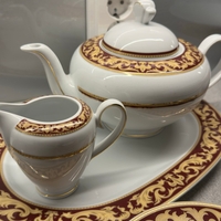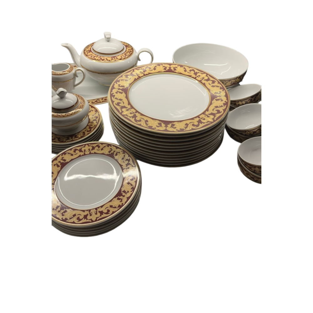Ylellinen Graf Von Henneberg posliinisetti punakultaisella koristelulla.
