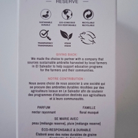 CLEAN RESERVE -kokoelma on luotu ajatellen ihmisiä ja planeettaa: tuoksut sisältävät muun muassa vastuullisia ainesosia, jotka hyödyttävät maanviljelijöitä ja heidän yhteisöjään. Radiant Nectar EdP sisältää vastuullisesti tuotettua, El Salvadorin maanviljelijöiden keräämää ambrettea. Yhteistyö tukee maanviljelijöitä ja heidän yhteisöjään sekä kehitysohjelmien että tasaisen tulonlähteen kautt