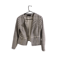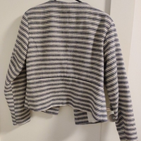 Raidallinen siisti jakku, vetoketjutaskut. Pientä rispaumaa saumoissa, ei kuitenkaan rikki.