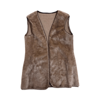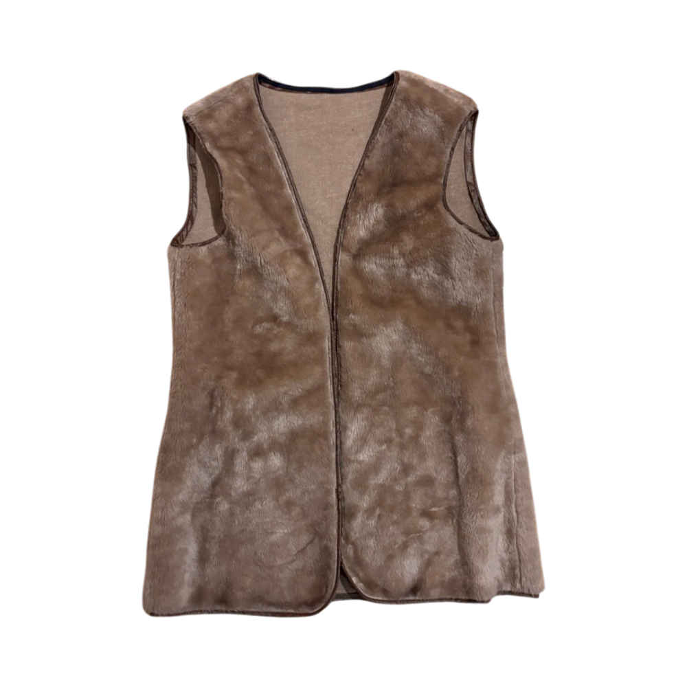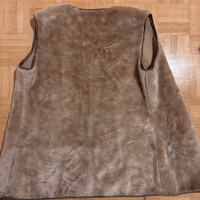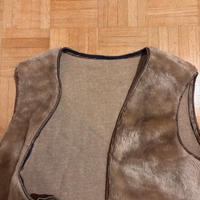 Beige-brown lämmin tekoturkisliivi, napit/vetoketju puuttuu näkyvissä
