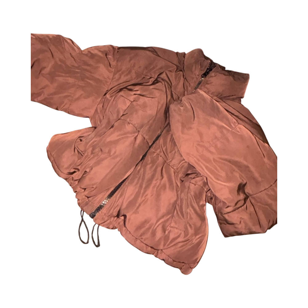 Pehmeä, paksu toppatakki, vetoketjullinen ja lämmin.