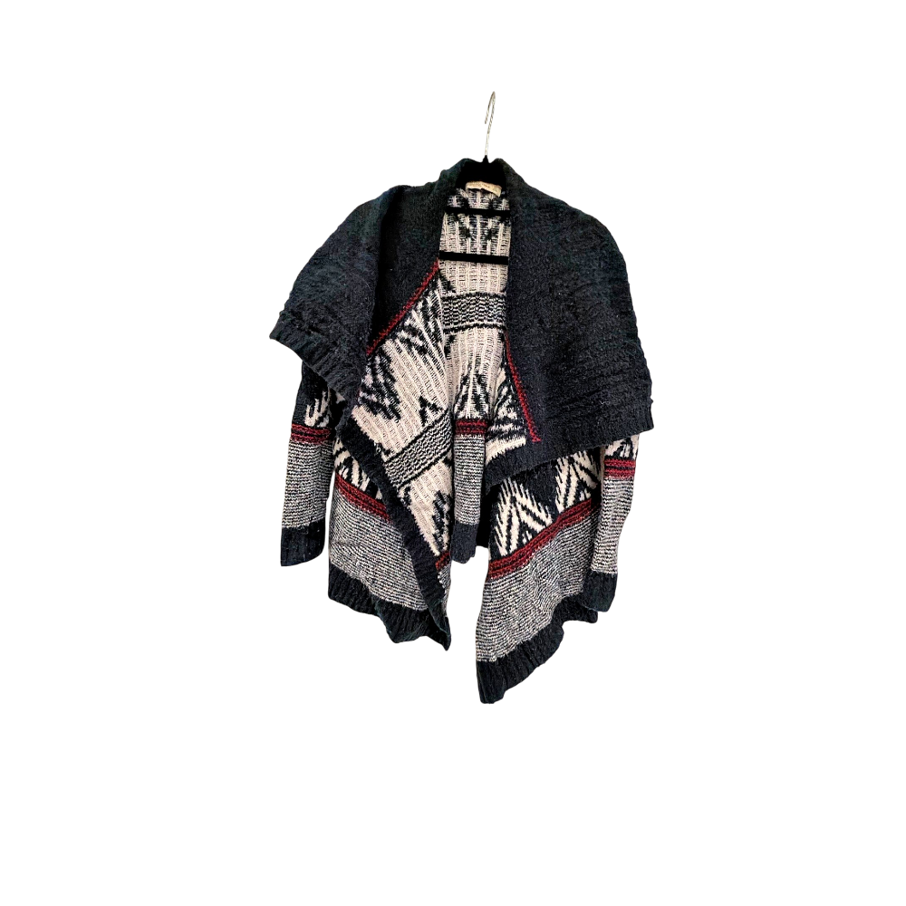 Ihanan lämmin neuletakki isommalla kauluksella. Pinnalla hieman nukkaantumista, muuten hyvässä kunnossa. Menee varmaan xs-m kokoiselle kun joustava. Villaa 25%.