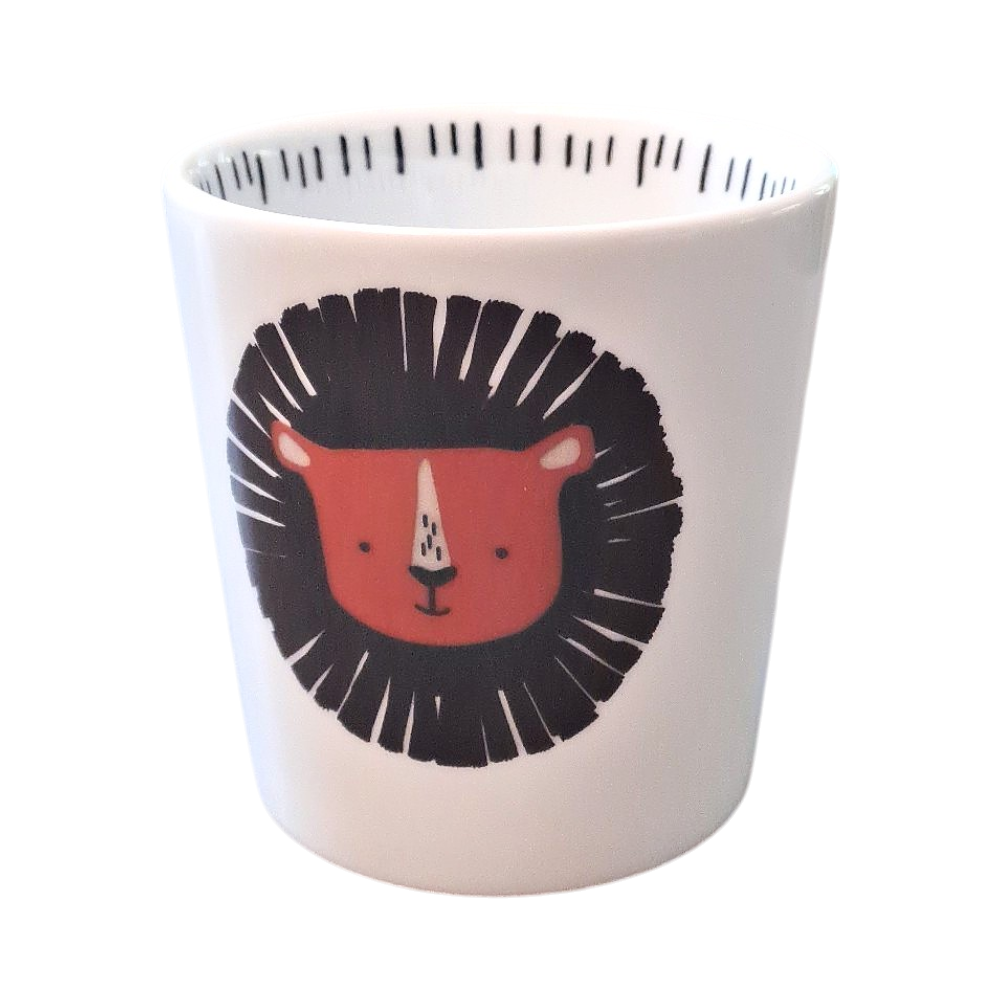 Niedliche Tasse mit Löwenmotiv, ideal für Kinder.