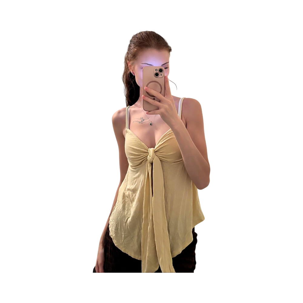 Keltainen solmittava toppi