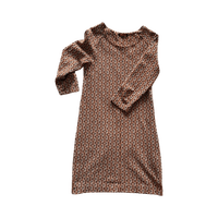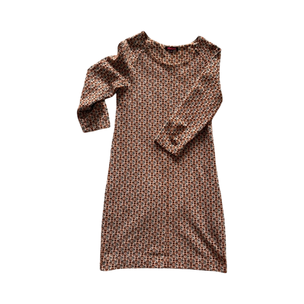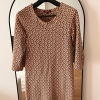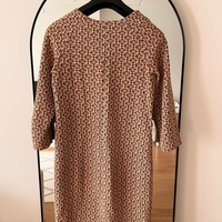 Polvipituinen kuvioitu mekko, 3/4-hihat, rento istuvuus.