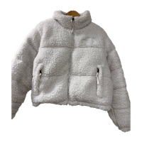 North facen valkoinen teddytakki, koko XL, omasta mielestäni hieman pienehköä kokoa. Vain muutaman kerran käytetty. Sivuilla vetskari taskut🤍