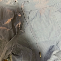 Mid-rise dance pants, regular length. Lululemon size 4. One end of the drawstring is broken, the metal part fell off in the first wash. It could be fixed with a new metal part but doesn’t bother use.