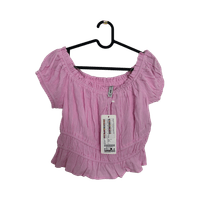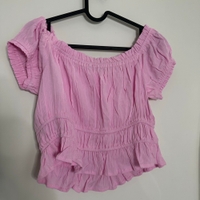 Lyhyt off-shoulder toppi röyhelöillä, uusi.
