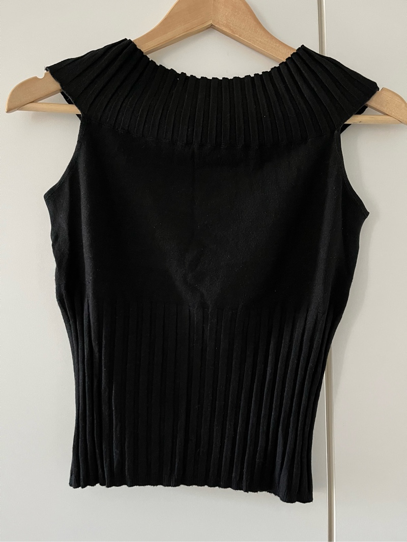 Musta toppi jota voi pitää myös off shoulderina. Koko merkitty 40 mutta vastaa enemmän XS/S. Kunnossa ei moitteita