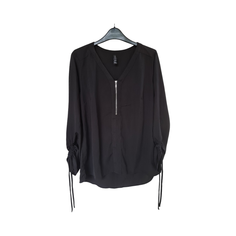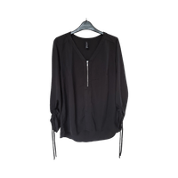 Kevyt musta pitkähihainen paita, vetoketju edessä, nyöritykset hihoissa.