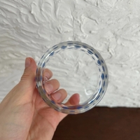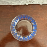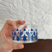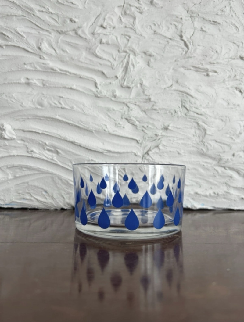 Clear glass bowl with blue raindrop pattern, small serving dish.