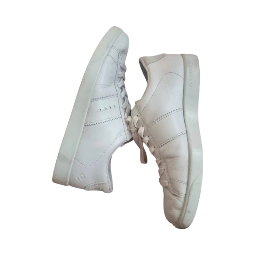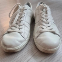 Valkoiset matalakärkiset nahkasneakerit, käytetyt mutta siistit.