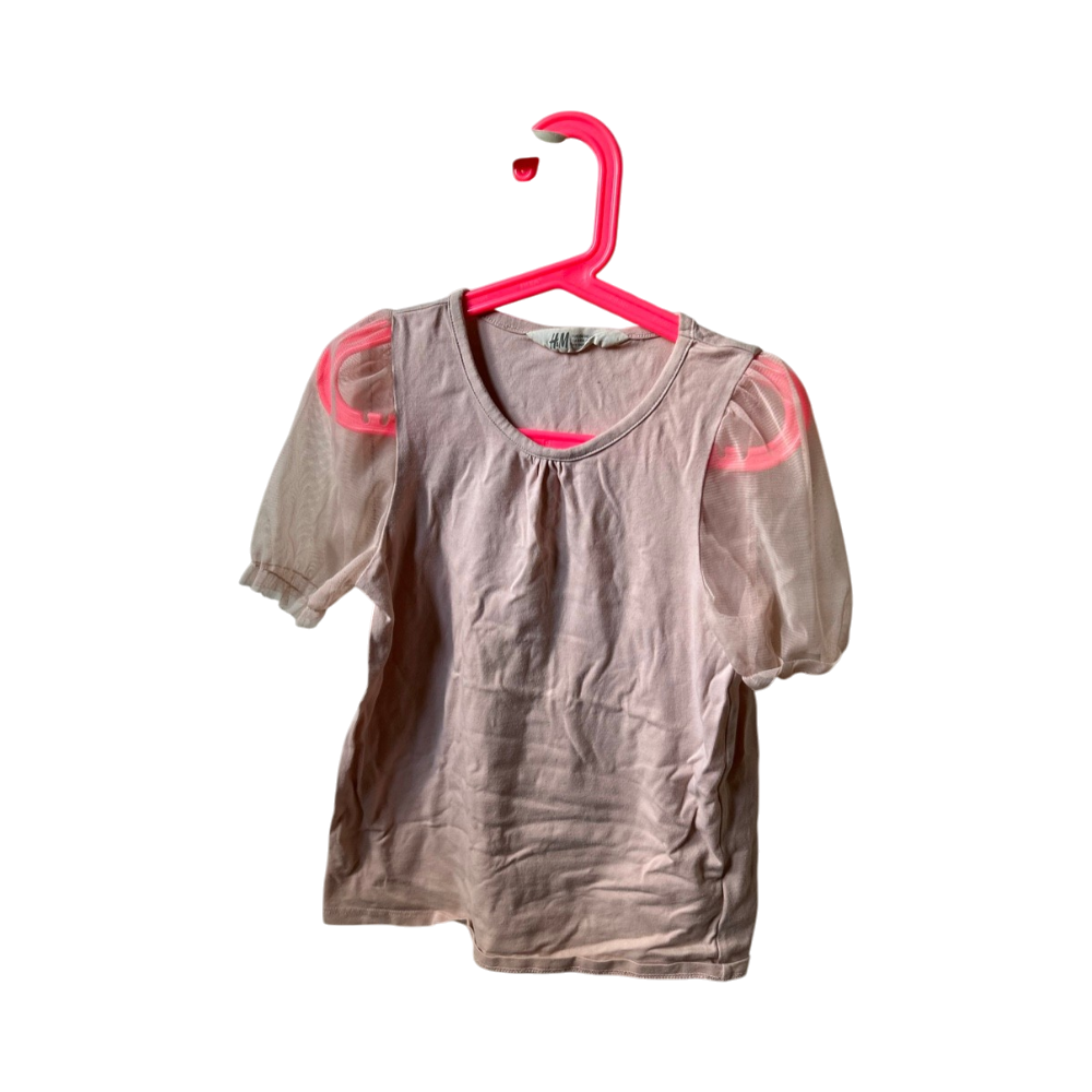 Vaaleanpunainen paita tyllihihoilla, lapsen koko.