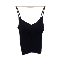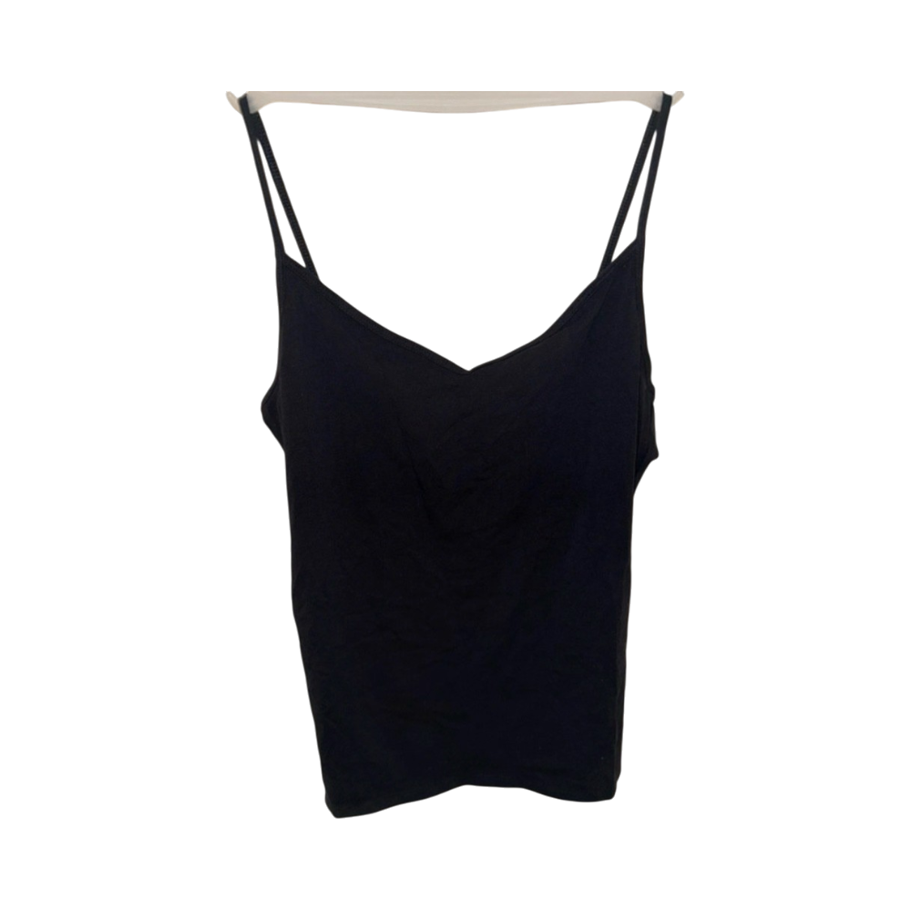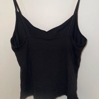 Tyylikäs ja monikäyttöinen musta toppi, jossa ohuet olkaimet. Koko L.