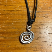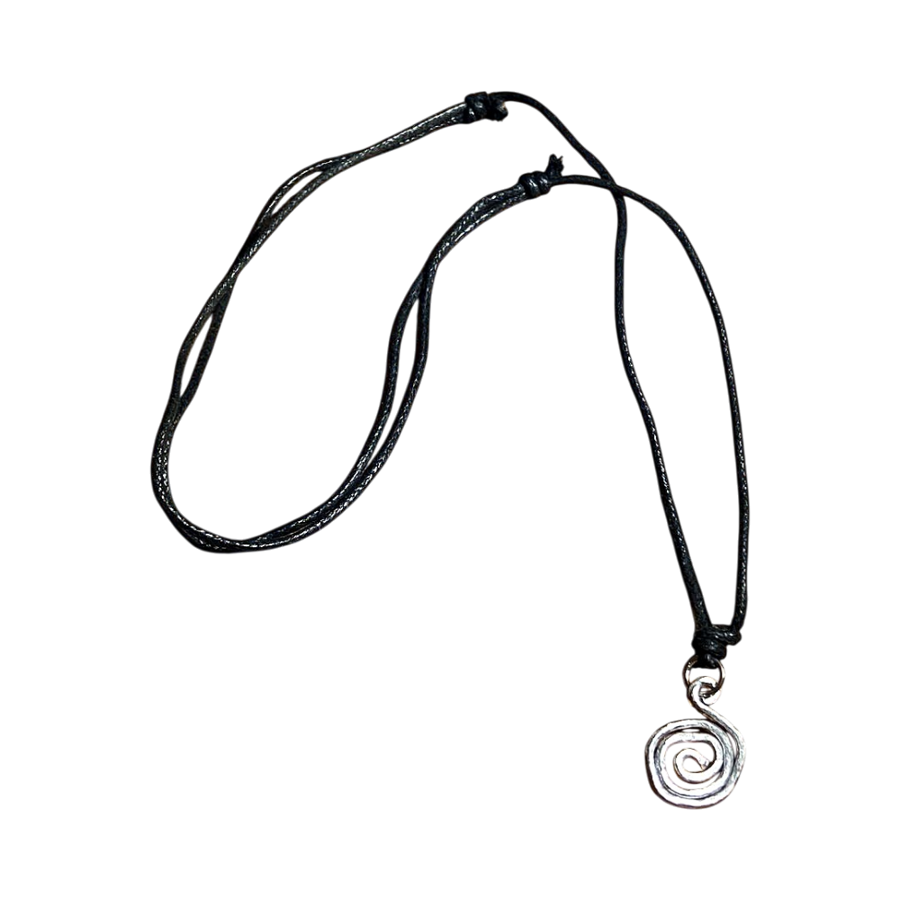 Hopean värinen pieni spiraalikaulakoru, korun koko noin 1,5cm, liukusolmut joista voi säätää pituuden itselle sopivaksi