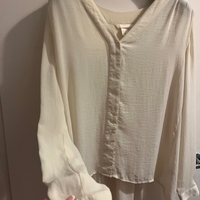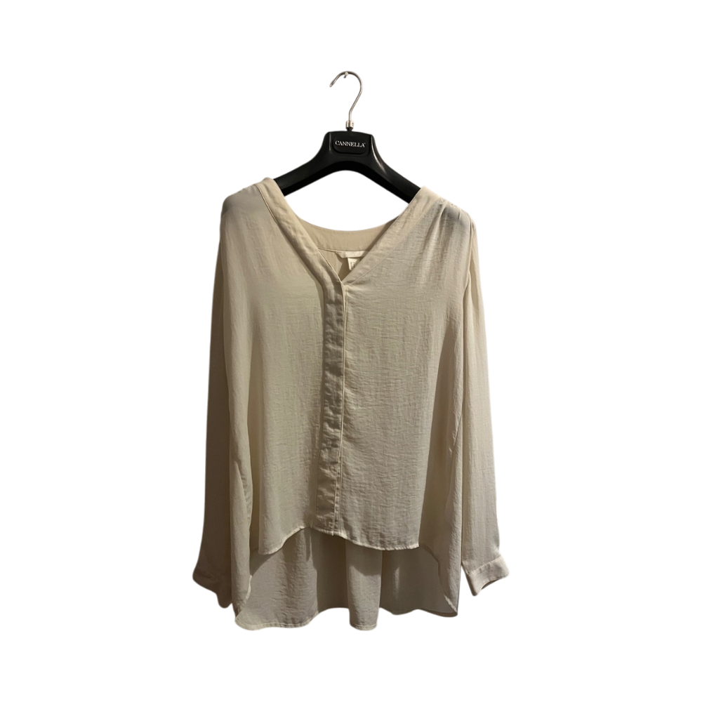 Kevyt, pitkähihainen sifonkipaita, helma pidempi takaa.