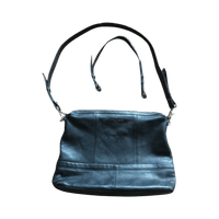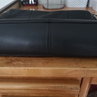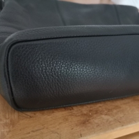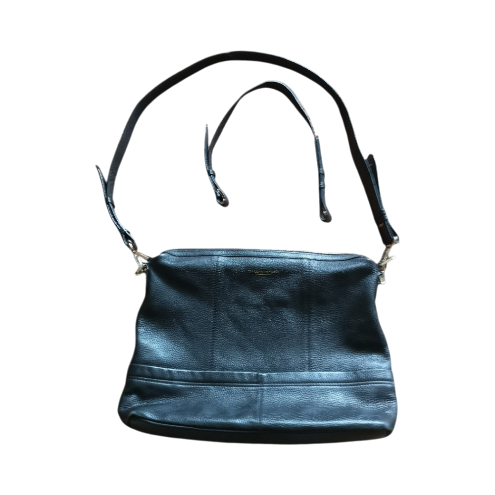 Mustaa teksturoitua nahkaa, säädettävä olkahihna, tilava.