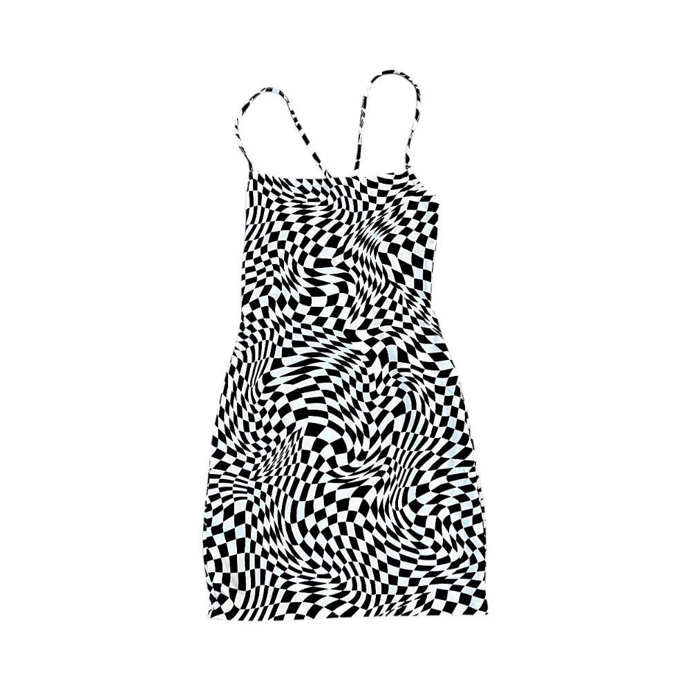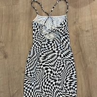 Reisipituinen ruudullinen mekko, jossa on avonainen selkä. Koko S. Mekko on uusi.