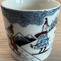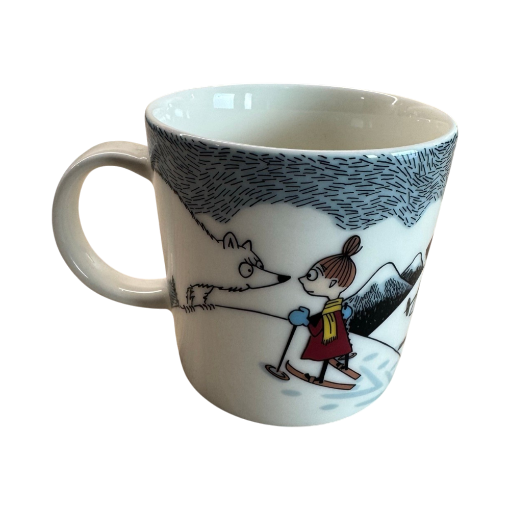 Myydään kuvienmukaisessa kunnossa oleva muumimuki: Hiihtäen kera herra Virkkunen