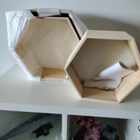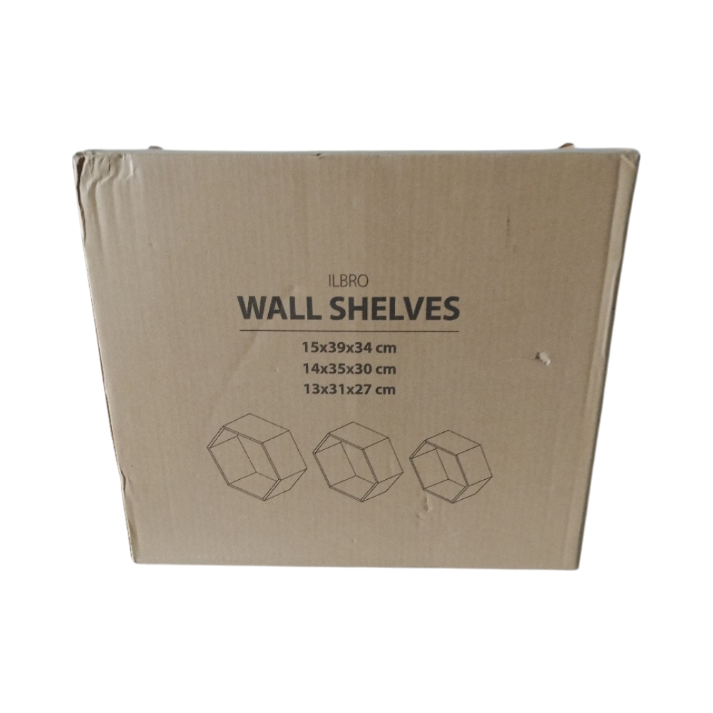 Puinen kuusikulmainen seinähylly, kolmen kappaleen setti. Täysin uudet ja käyttämättömät
