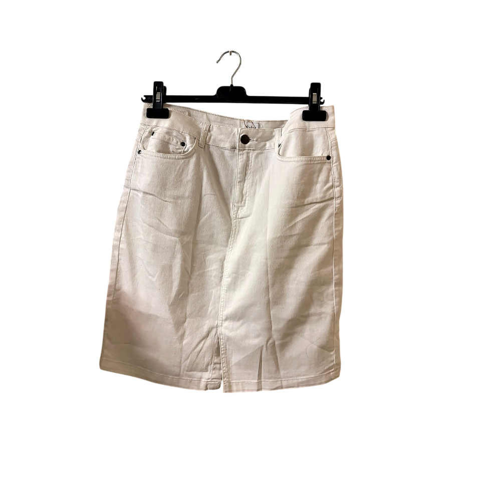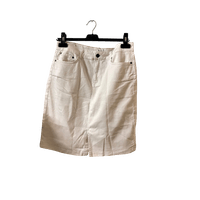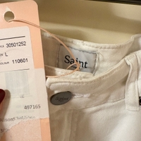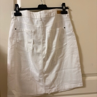 Uusi Saint Tropezin valkoinen farkkuhame. Laput edelleen kiinni. Todella joustavaa ja mukavaa kangasta. Edessä pieni halkio.