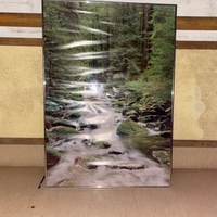 Maalaus/vedos hevossilueteista kultakehyksellä.