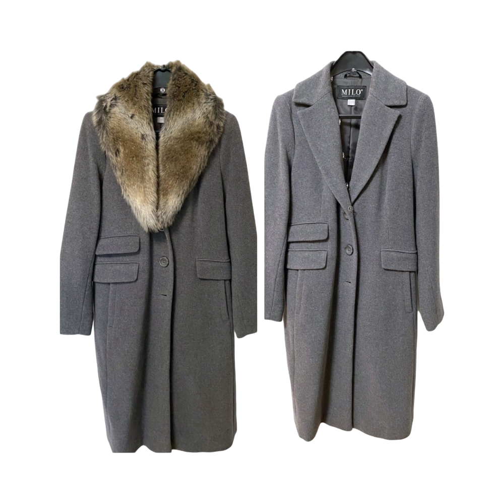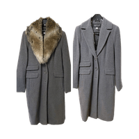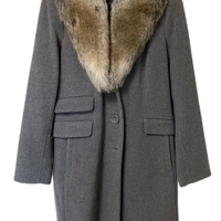 Milo harmaa pitkä villakangastakki 38/40, irrotettava karvakaulus