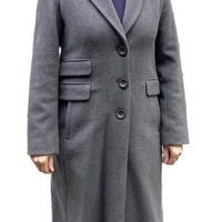 Uudenveroinen villakangastakki, jossa on pitkät hihat. Tämä on näytekappale, joten ei materiaalilappua. Valmistajan mukaan villapitoisuus on vähintään 50%