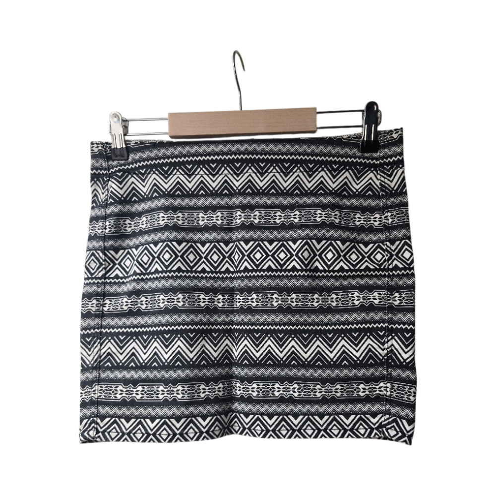 Hyväkuntoinen musta-valkoinen minihame, koko 36. Vetoketju takana