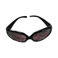 Tyylikkäät ja kevyet aurinkolasit, jotka sopivat erityisesti pienikokoisille ja kapeille kasvoille. Kehykset ovat mustat, muoviset ja koristeelliset – kulmissa hopeiset yksityiskohdat, jotka tuovat ilmettä. Linssit ovat liukuvärjätyt: tummemmat ylhäältä, vaalenevat alaspäin.