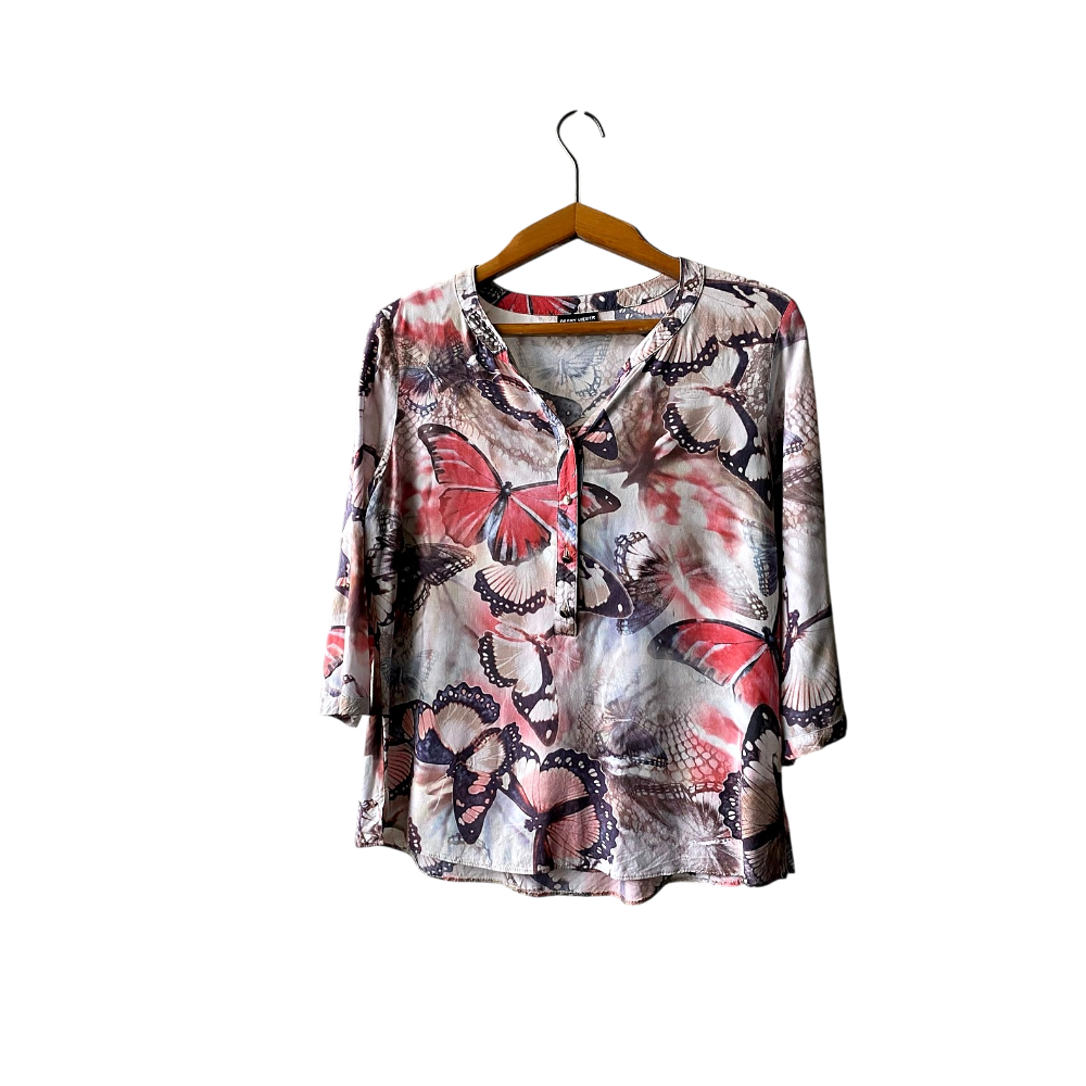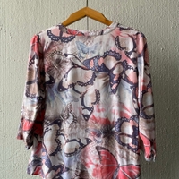 Vaalea kevyt pusero. Hihat saa käärittyä lyhyemmiksi. Koko 38, kainalo-kainalo 50 cm ja pituus 64 cm. Pesulappu leikattu.