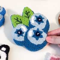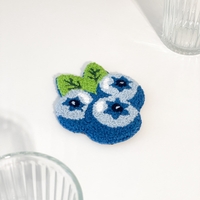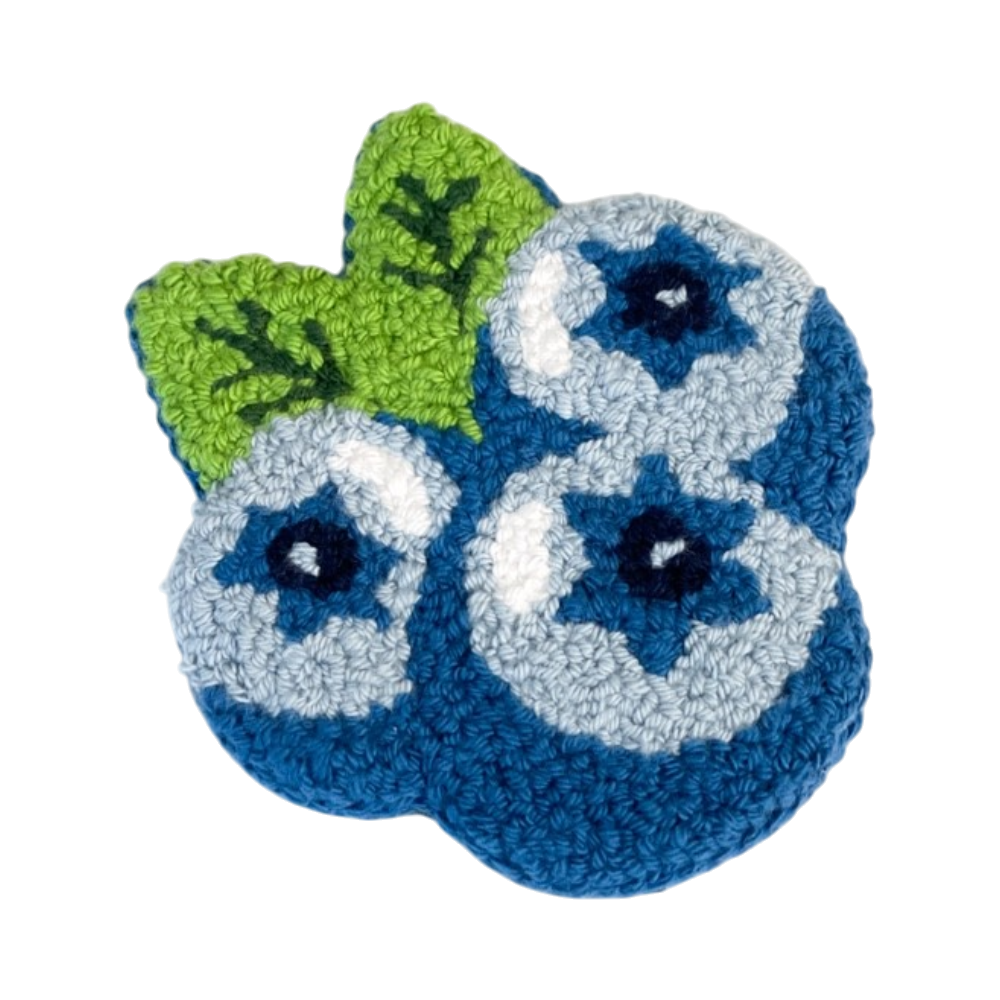 Handmade punch needle blueberry-shaped coaster.