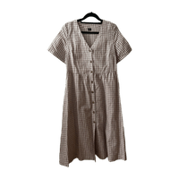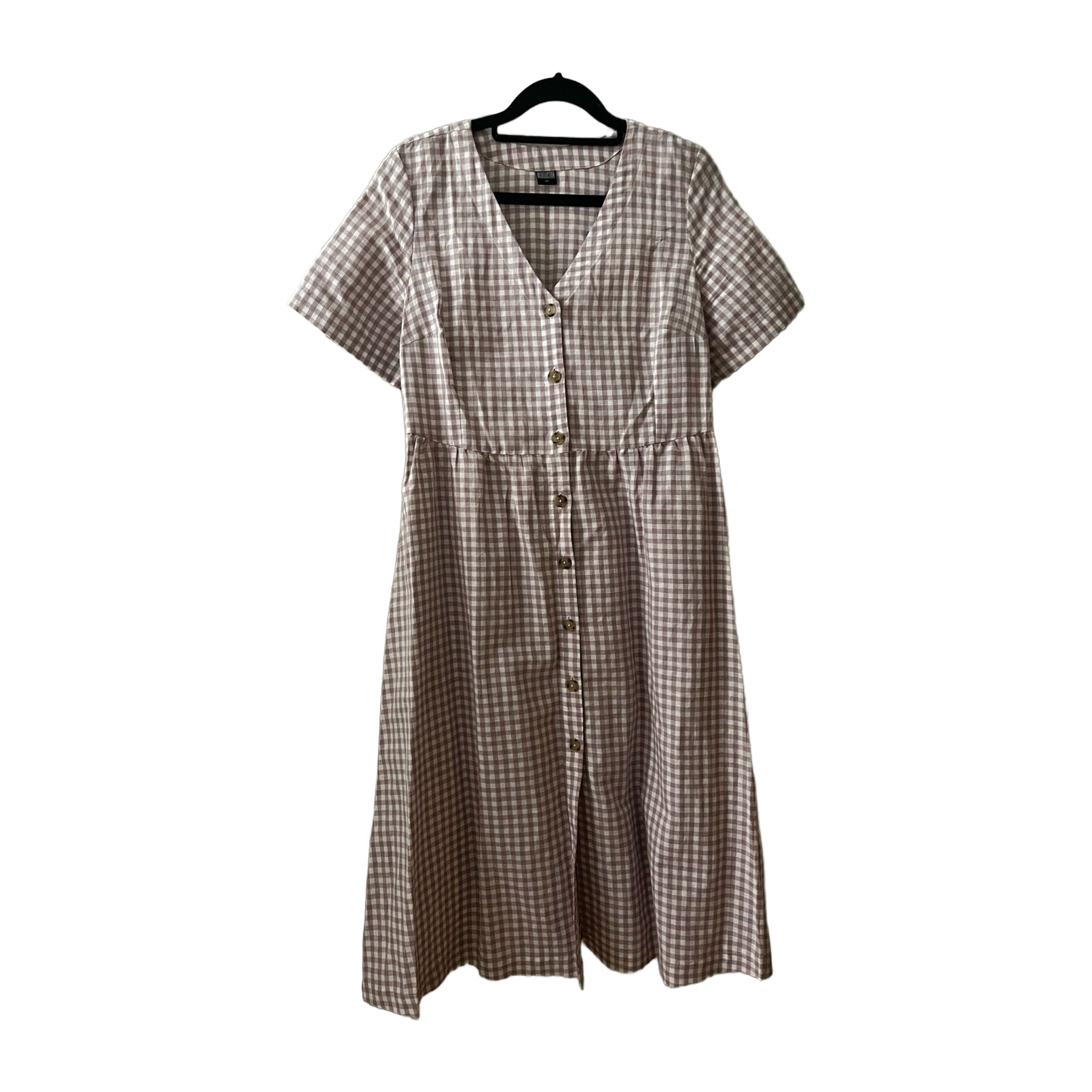 Sivuilla tilavat taskut, edessä napit ylhäältä alas.