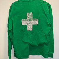 Classic long sleeve T-shirt from Places+Faces in bright green with reflective white logo print across the chest and signature cross logo on the back. Medium weight cotton with ribbed cuffs. A staple piece from the London streetwear label.