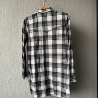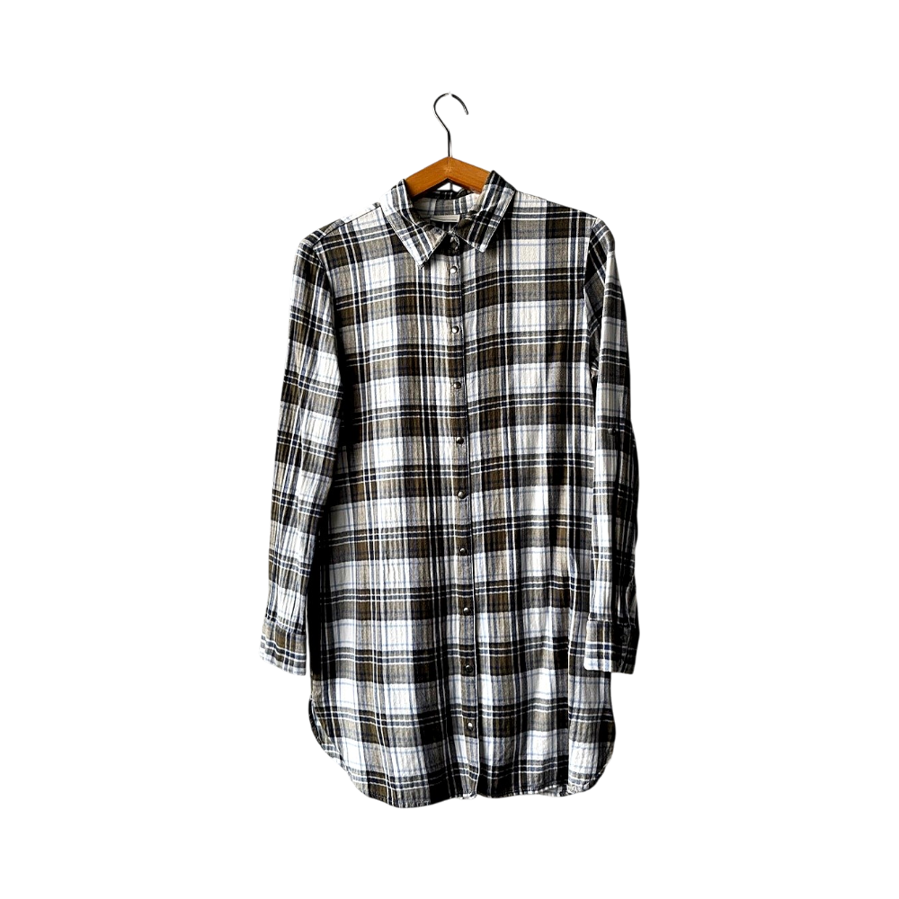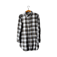 Ruudullinen pitkä kauluspaita/paitamekko. Koko S, kainalo-kainalo 51 cm ja pituus 83 cm. Alin neppari irronnut (viimeinen kuva).