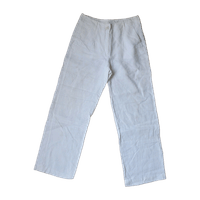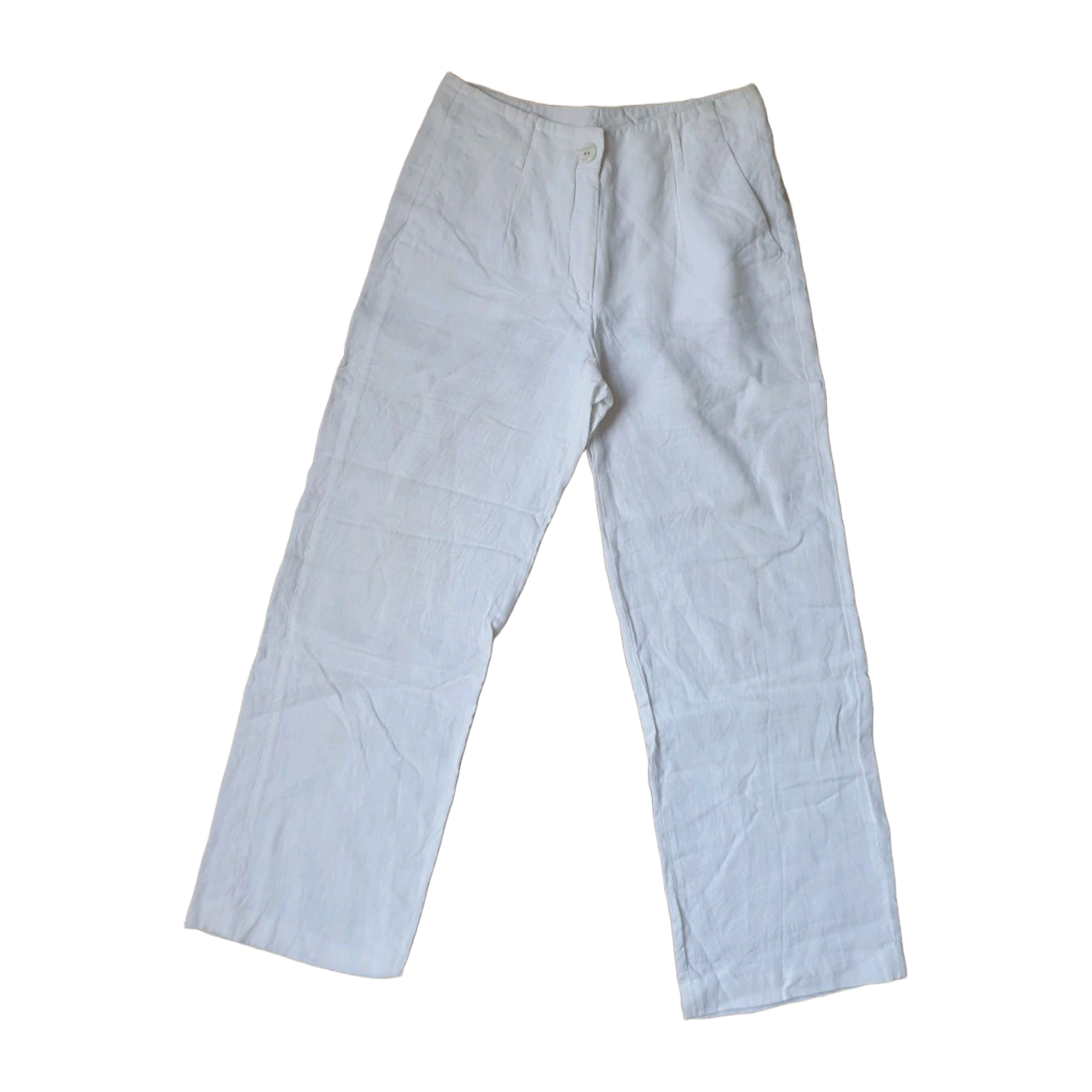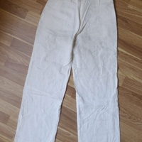 Pellava pöksyt. Vyötärö tulee navan alle.