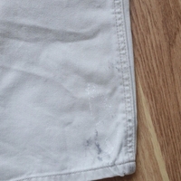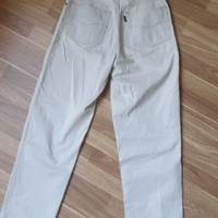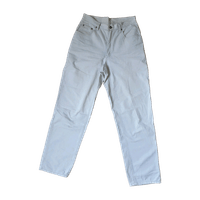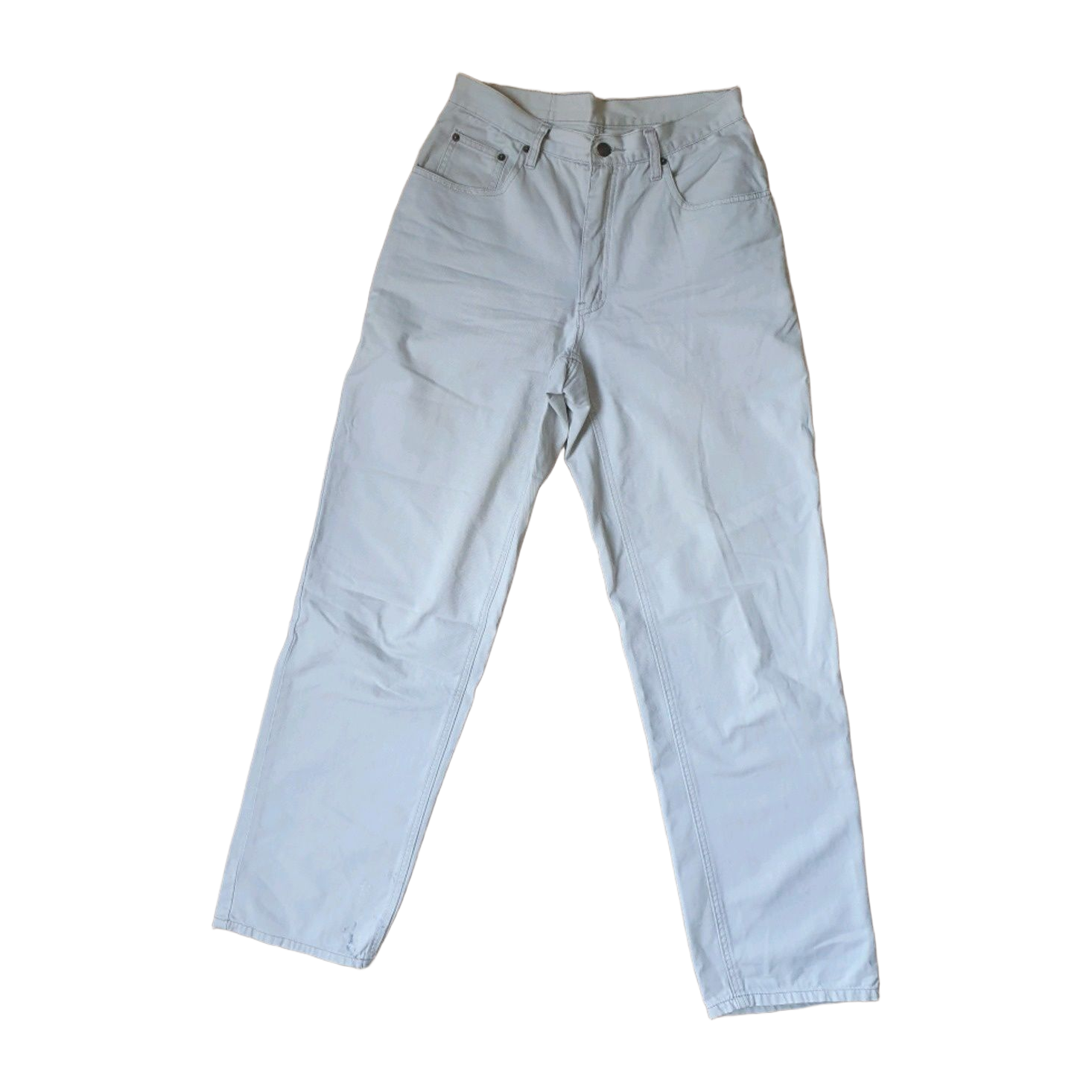 Puuvilla kangashousut korkealla vyötäröllä. Vaihdettu uusi vetskari suutarilla. Huom! Lahkeissa jotain maalitahroja tms.