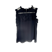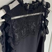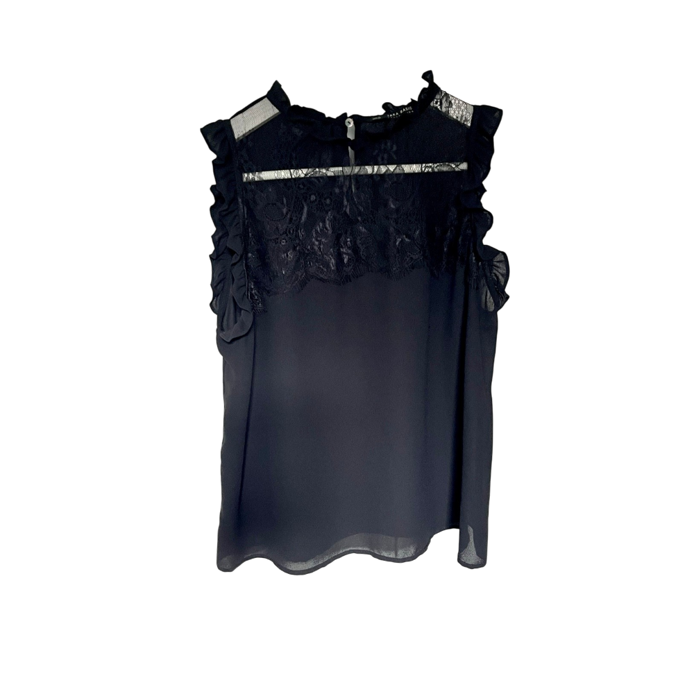 Elegantti musta sifonkitoppi pitsiyksityiskohdilla.