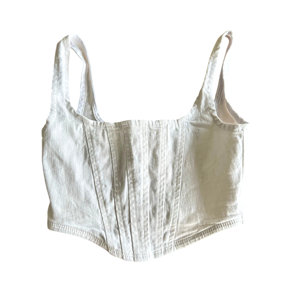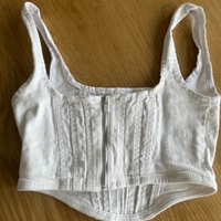 Käytetty valkoinen crop-top, koko XS. Farkku kangasta