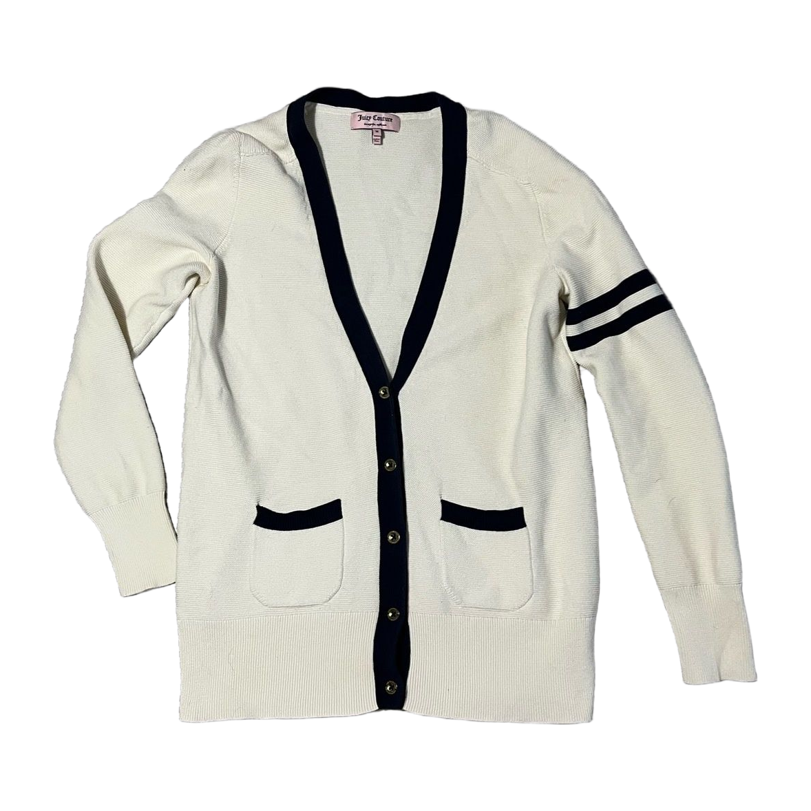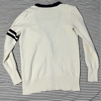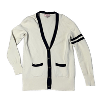Medium, white and navy, 100% cotton, knitted, button up cardigan. Very good condition.