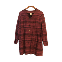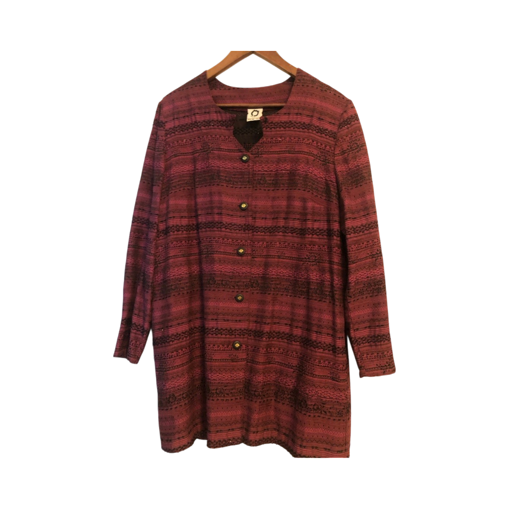 Lila-musta vuoreton vintage-jakku/ tunika napeilla. Koko 38, jakun pituus 80 cm.