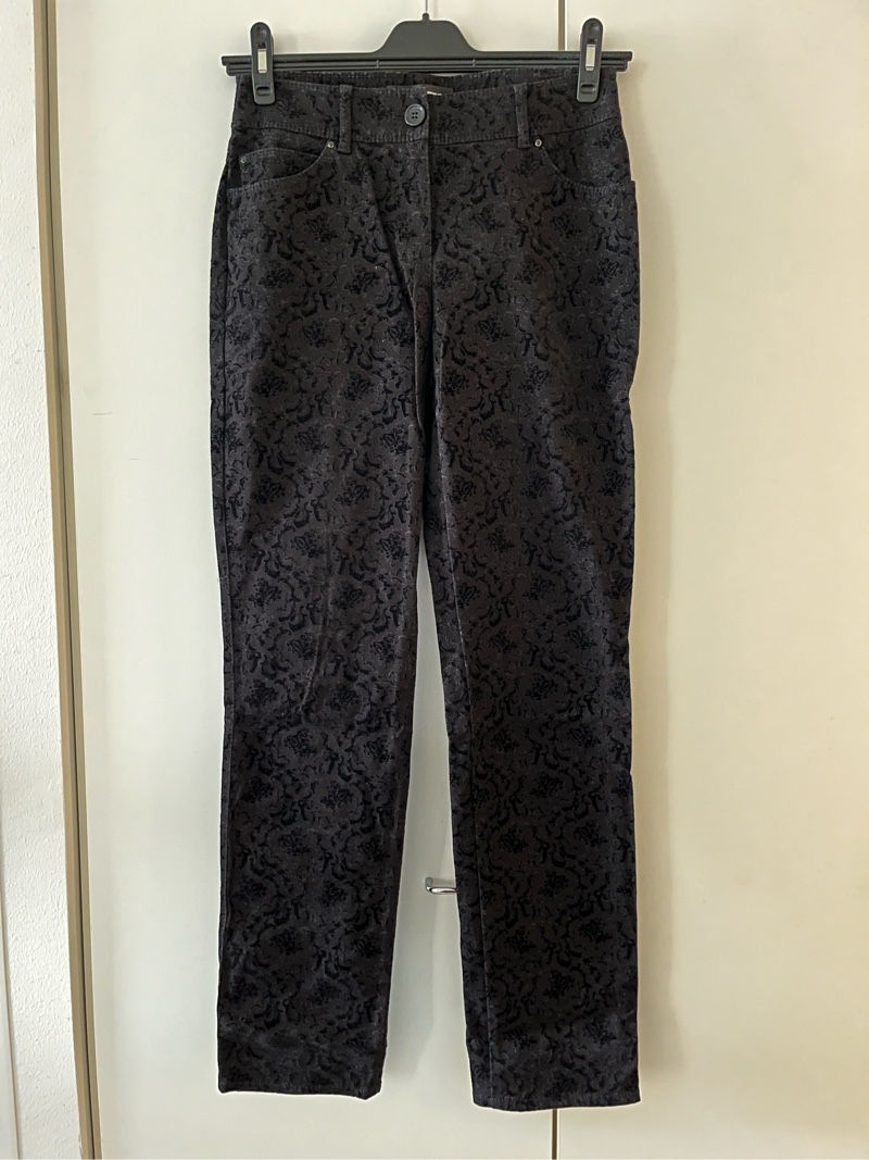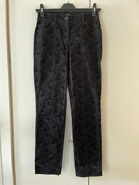 Gerry Weberin mustat suoralahkeiset farkut samettisella kuvioinnilla koossa 38. Kunnossa ei moitteita