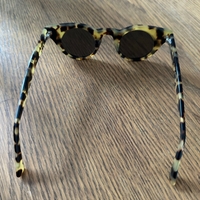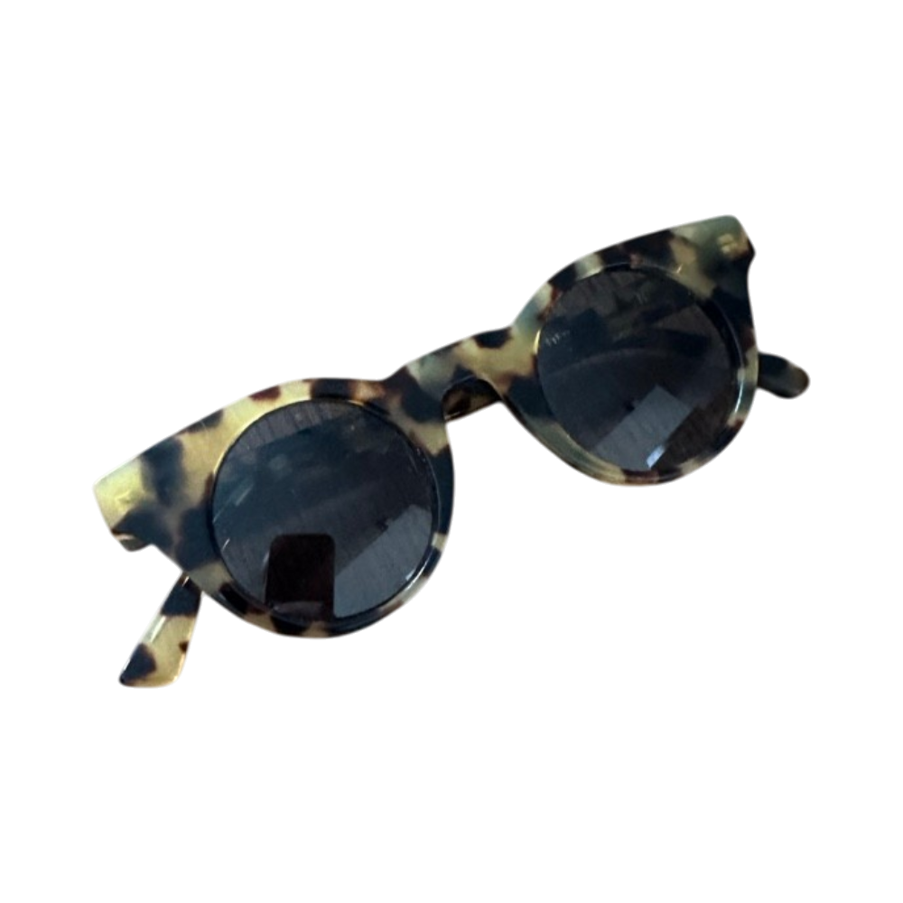 Pyöreät aurinkolasit kilpikonnakuosilla, vintage‑tyyliä.