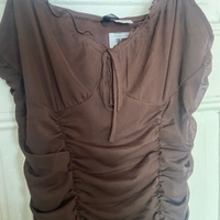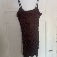 H&M ruskea ruched dress, kokoa M, venyy hyvin joten saa aseteltua haluttuun pituuteen. Kerran käytetty.