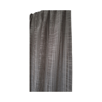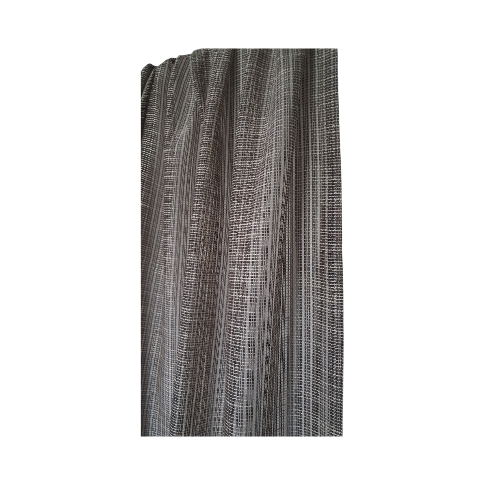 Vallilan läpikuultavasta verhokankaasta ommellut ruskeat sivuverhot. Kankaassa myös luonnonvalkoista.