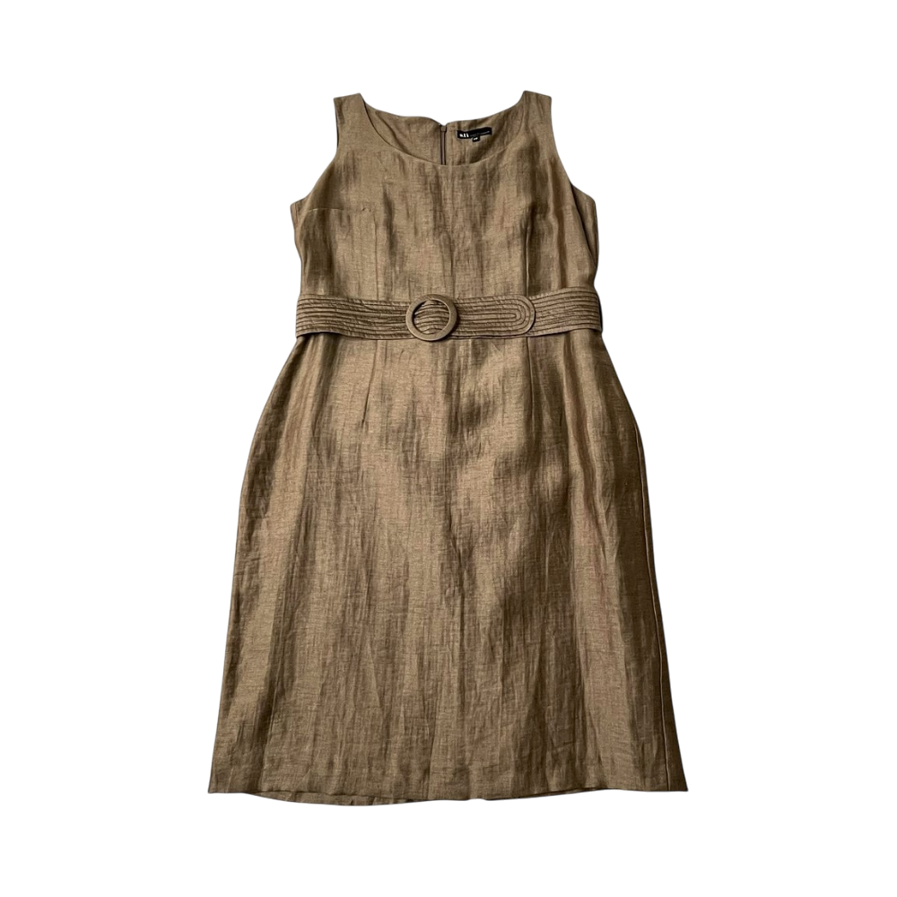 S.t.i Linen Blend Gold Tone Cocktail Dress Sz. 38