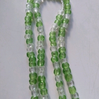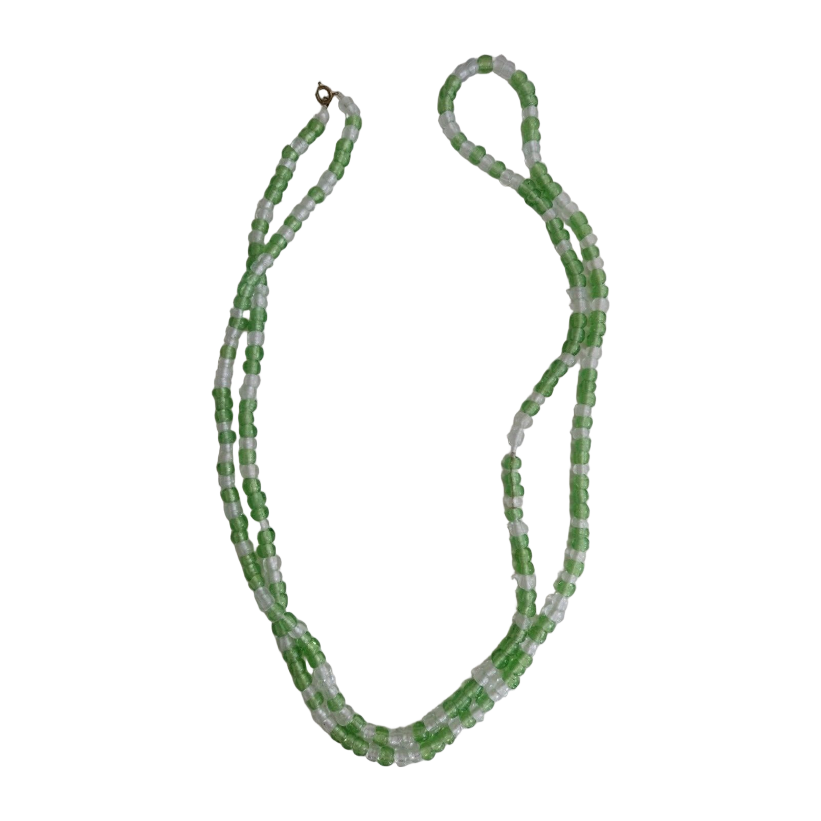 Tosi pitkät vihreä-valkoiset lasihelmet, vintagea. Saatu perintönä. Lukko toimii. Koko pituus 166cm