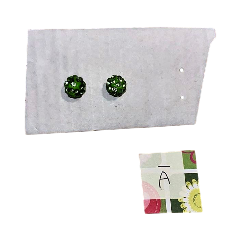 Vihreät pallo korvakorut. Puhdistettu ja desinfioitu käytön jälkeen. Eläintalous MMM, lisätietoja saa kysymällä