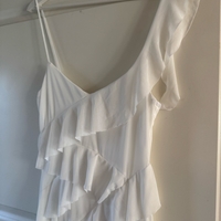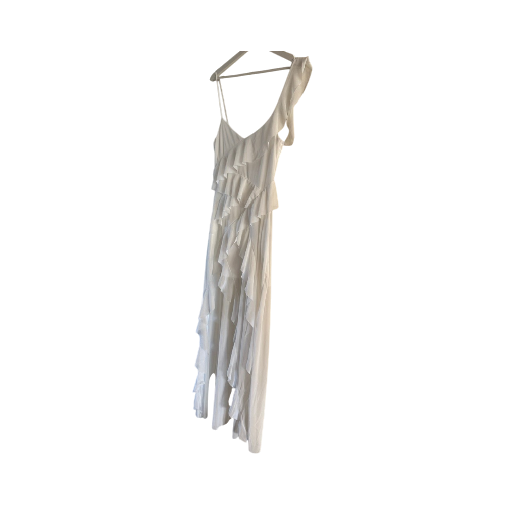 Valkoinen rypytetty pitkä mekko S